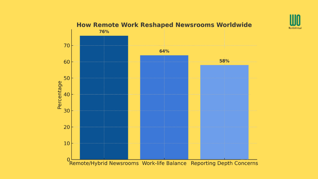 One of the biggest winners has been work-life balance. Press Gazette reported that 63 percent of remote journalists felt more satisfied with their flexible/remote jobs. This flexibility has helped retain talent in an industry often known for burnout.