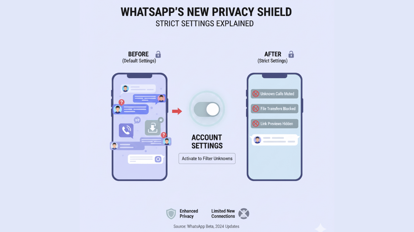WhatsApp is discreetly piloting a significant security update that could redefine how users interact with unknown contacts. The new “Strict account settings” mode is currently deep in beta testing. It offers a powerful shield against unwanted calls and messages. This single feature gives users an option to reclaim their inbox privacy. However, it also raises significant questions for businesses and creators who rely on initial contact from strangers.
